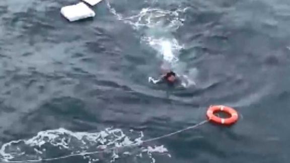 Görüntülerde, Rus balıkçıların, sudaki adama can simidi attıkları, adamın ise simide doğru yüzdüğü görülüyor. Ardından gemiye doğru çekilen adam, gemi mürettebatı tarafından gemiye alınıyor.