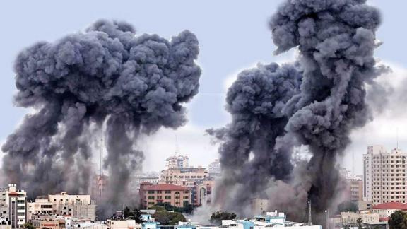 İsrail, Gazze'de sivillerin ikamet ettiği dairelerin ve ticari ofislerin bulunduğu 14 katlı binayı vurdu.