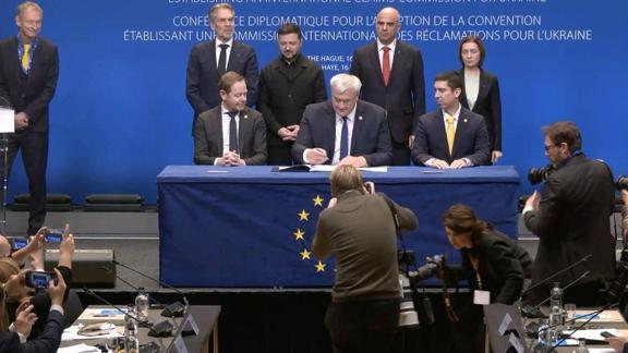 Hollanda'nın idari başkenti Lahey'de düzenlenen törende 30'dan fazla ülke, Ukrayna ve Avrupa Konseyi ile Uluslararası Tazminat Komisyonunun kuruluş anlaşmasını imzaladı.