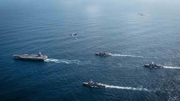 USS Gerald R. Ford liderliğindeki taarruz filosunun 4 binden fazla askeri personel ile düzinelerce taktik askeri uçağı taşıdığı kaydedilerek, "Kendi sınıfının ilk uçak gemisi olan USS Gerald R. Ford, gündüz-gece fark etmeksizin sabit kanatlı uçakların iniş ve kalkışına aynı anda imkan tanıyarak katıldığı operasyonları kesintisiz şekilde destekleyebilmektedir" hatırlatmasında bulunuldu. USS Gerald R. Ford uçak gemisinin yanı sıra, Arleigh Burke sınıfı güdümlü füze destroyerleri USS Bainbridge ve USS Mahan ile entegre hava ve füze savunma komuta gemisi USS Winston S. Churchill dahil çok sayıda askeri varlığın bölgeye konuşlandırıldığı vurgulandı.