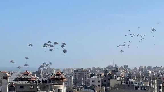 CENTCOM'dan yapılan açıklamada, "ABD Merkez Komutanlığı ve Ürdün Kraliyet Hava Kuvvetleri, Gazze'de devam eden çatışmalardan etkilenen sivillere temel yardım sağlamak amacıyla 1 Nisan 2024 tarihinde, yerel saatle 12:16'da Gazze'ye havadan birleşik bir insani yardım operasyonu gerçekleştirdi. Birleşik ortak operasyon Ürdün tarafından sağlanan gıda ve 3 ABD Hava Kuvvetleri C-130 uçağını içeriyordu. ABD C-130 uçakları pirinç, un, süt, makarna ve konserve gıda da dahil olmak üzere 25 bin 344 öğün eşdeğeri gıda bırakarak hayat kurtarıcı insani yardım sağlamıştır. Görev sırasında yaklaşık 60 paket denize inmiştir. CENTCOM şu anda sivillerin zarar görüp görmediğini ya da altyapıya verilen zararı değerlendirmemektedir ancak durumu izlemeye devam etmektedir" denildi.