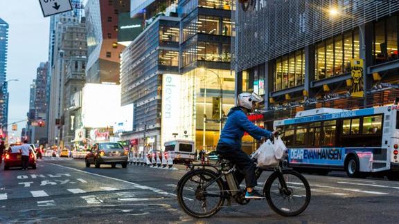 New York'ta, hafta sonları yaklaşık 65 bin kişi ek gelir elde etmek amacıyla kuryelik yapıyor. Kuryeler, maliyetlerinin düşük olması nedeniyle genelde elektrikli bisiklet ya da elektrikli scooter gibi araçları tercih ediyor.