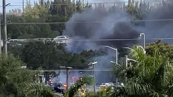 Uçağın, Boca Raton'da bir otoyola düştüğü ve bir arabaya çarparak alev aldığı belirtildi.