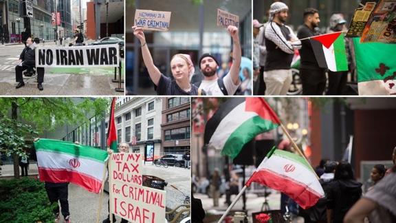 Amerika Birleşik Devletleri'nin Illinois eyaletine bağlı Chicago kentinde toplanan bir grup, İsrail'in İran'ın farklı kentlerine düzenlediği saldırıları protesto etti.