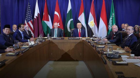 BM Genel Kurulu marjında düzenlenen Gazze konulu toplantıda Başkan Erdoğan ile ABD Başkanı Donald Trump'ın yan yana çekilmiş fotoğrafına işaret edilen haberde, "Trump Erdoğan'ı kendisine eşit muhatap olarak görürken Atina, Miçotakis'in üstünlük gösterme isteğiyle kendi ulusal söylemini arıyor." ifadesi yer aldı.