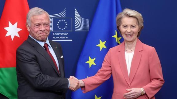 AB Komisyonu Başkanı Ursula von der Leyen, Brüksel'de Ürdün Kralı 2. Abdullah'ın da katıldığı, "AB-Ürdün Stratejik ve Kapsayıcı Ortaklık Anlaşması" imza töreninin ardından açıklamada bulundu.