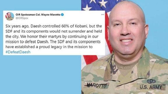 ABD'nin terör örgütü PKK'nın Suriye uzantısı YPG/PYD ve SDG'ye verdiği desteğe bir yenisini daha ekledi. ABD Merkez Komutanlığı'na bağlı DEAŞ ile Mücadele Uluslararası Koalisyon Sözcüsü Albay Wayne Marotto, sosyal medya hesabından terör örgütüne övgüler yağdırdı.