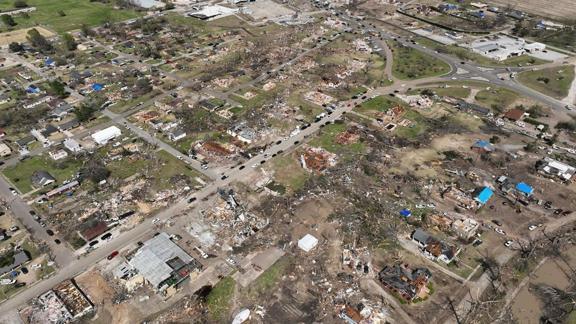 Hortumların Mississippi'de en fazla yıkıma yol açtığı Rolling Fork kasabasındaki görüntüler, doğal afetin şiddetini ortaya koydu.