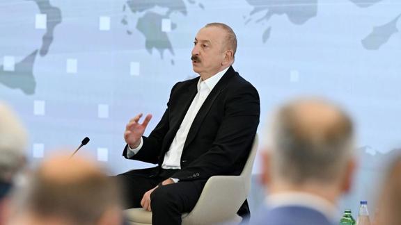 Aliyev, 3. Şuşa Global Media Forumu'nun katılımcılarıyla Hankendi şehrinde bir araya gelerek bölgesel ve küresel gelişmeleri değerlendirdi.