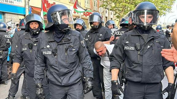 Almanya'nın başkenti Berlin'de, Filistin'e destek eyleminde çok sayıda gösterici gözaltına alındı.