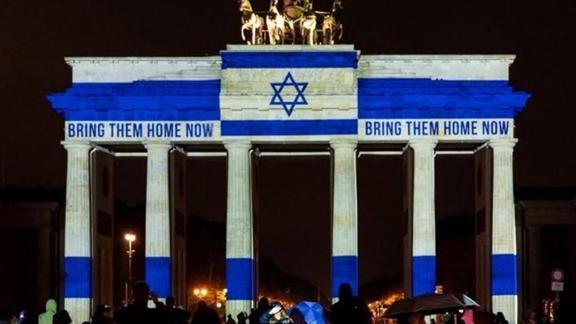Almanya Berlin'in ana sembollerinden biri olan Brandenburg Kapısı'na soykırımcı İsrail'in bayrağı yansıtıldı.