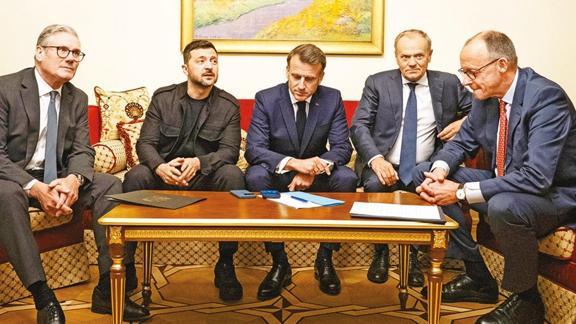 Keir Starmer - Volodimir Zelenski - Emmanuel Macron - Donald Tusk - Friedrich Merz