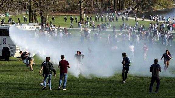 Belçika'nın başkenti Brüksel'de "1 Nisan şakası" olarak duyurulan müzik festivali için binlerce genç parkta toplanınca polis müdahale ederek gençleri tazyikli su ve gaz kullanarak dağıttı.