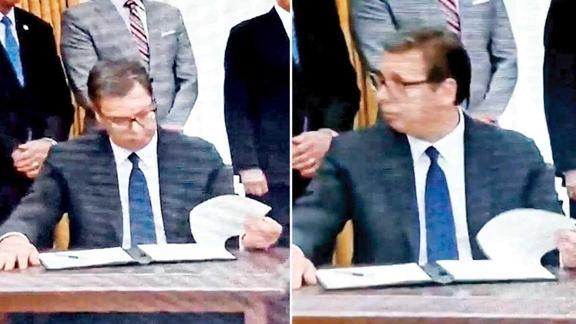 ABD Başkanı Donald Trump, önceki gün ekonomik ilişkileri normalleştirme kararı alan Sırbistan Devlet Başkanı Aleksandr Vucic ve Kosova Başbakanı Abdullah Hoti ile Oval Ofis’te düzenlediği basın toplantısında, iki ülkenin büyükelçiliğini Kudüs’e taşıyacağını açıklamıştı. Trump’ın bu açıklamayı yaptığı sırada, Vucic’in yüz ifadeleri dikkat çekti. Görüntülerde Vucic’in önünde duran anlaşma metninin sayfalarını karıştırarak, yan tarafında bulunan kişilere göz ucuyla baktığı görülüyor. “Direktno” isimli Sırp haber sitesinde çıkan “Kudüs mü? Ne Kudüs’ü?” başlıklı haberde, Beyaz Saray’daki görüşmelerde Sırp heyetin ya anlaşmanın maddelerine bakmadığı ya da bazı maddelerin bilgileri dışında eklendiği ifade edildi. Beyaz Saray’daki tavır, Vucic’in sinirlerini alt üst etti. Vucic, kendisi için “sorgulandı” yorumunda bulunan Rusya Dışişleri Sözcüsü Zaharova’ya “Gösterdiği terbiyesizlik, kendisi ve onu bu yere getirenler hakkındadır” karşılığı verdi. Bir süre sonra Rusya Dışişleri Bakanı Lavrov telefonla arayıp Vucic ile görüştü.