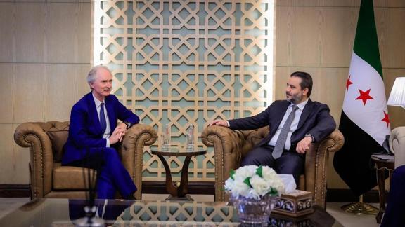 Suriye haber ajansı SANA'nın haberine göre Bakan Şeybani, Şam'da BM Özel Temsilcisi Pedersen ve beraberindeki heyeti kabul etti.