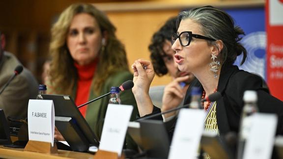 Albanese, AB'nin değerlerine aykırı hareket etmesine karşın Avrupalı vatandaşların birçok yerde meydanlara indiğini ancak pek çoğunun coplandığına dikkati çekerek, "Bu mu istediğimiz Avrupa? Bunun aynı zamanda Avrupa içinde bir uyanış anı olduğuna inanıyorum. İsrail'in çıkarlarının korunması ne zaman vatandaşların korunmasından daha önemli hale geldi? Bu soruyu Avrupalıların kendilerine sorması gerekiyor. İsrail'le nasıl bir bağ söz konusu? Bu sorunun cevabı, Filistin meselesine de yanıttır." dedi.