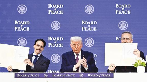 ABD Başkanı Donald Trump'ın, Gazze'nin savaş sonrası geçiş sürecinin denetlenmesi, yeniden inşası ve güvenliğine yönelik önerdiği Barış Kurulu şartı için İsviçre'nin Davos kentinde imzalar atıldı. İlk imzayı Trump'ın attığı törene, Başkan Erdoğan'ı temsilen Dışişleri Bakanı Hakan Fidan katıldı. Bakan Fidan'ın imzasıyla Türkiye, Barış Kurulu üyesi oldu. İlk etapta 24 ülkenin imzaladığı anlaşmaya, Fransa, Almanya, İtalya, Norveç, İsveç, Slovenya ve İngiltere katılmadı. Trump, Barış Kurulu'na 59 ülkenin katıldığını belirterek, "Bu insanlık tarihindeki en büyük kurum olabilir. Nerdeyse tüm ülkeler bunun bir parçası olmak istiyor. Dünyanın en önemli insanları burada. Gazze'deki savaş şu anda sona eriyor. Çok ama çok büyük yangınlar vardı. Bu ateşi söndüreceğiz. Hamas verdiği sözleri tutacak. Gazze'yi yeniden inşa edeceğiz. Gazze'de başarılı olursak başka konularda da çalışacağız" diye konuştu.