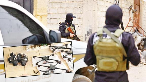 Yapılan aramalarda; FPV tipi insansız hava araçları (İHA) ve ilgili teçhizatları, yaklaşık 1.5 ton ağırlığında TNT tipi patlayıcı madde ile kamikaze İHA'larda kullanılmak üzere hazırlanmış 2 kilogramlık anti-personel mayınlar ele geçirildi.