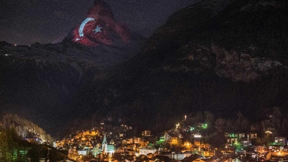 İHA'nın aktardığı habere göre, İsviçre’nin Zermatt kasabasında bulunan dünyaca ünlü Matterhorn Dağı "Işık Umuttur" projesi kapsamında koronavirüs salgını ile mücadele eden ülkelere destek olmak amacı ile 26 Nisan tarihine kadar çeşitli ülkelerin bayrakları ile aydınlatılacak. Zermatt halkı, bu proje kapsamında korona virüs salgını ile zor zamanlar geçiren insanlara destek olmak ve umut aşılamak istediklerini ifade ederken, korona virüs salgının üstesinden gelmeye çalışan ve bu konuda insanlara yardımda bulunan herkese minnettarlıklarını göstermeyi amaçladıklarını dile getirdi. Dün gece "Işık Umuttur" projesi kapsamında Matterhorn Dağı’nın kuzey tarafı Türk bayrağı silüeti ile aydınlatılarak, “İnsanlara bir umut işareti gönderiyor ve krizin üstesinden gelmeleri için onlara güç ve azim diliyoruz." mesajı yayınlandı.