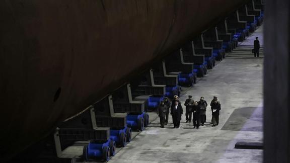 Habere göre, yetkililer, Güney Kore ve ABD için büyük güvenlik tehdidi oluşturabilecek bir silah sistemi olarak nitelendirilen bu denizaltının inşası hakkında Kim'i bilgilendirdi.