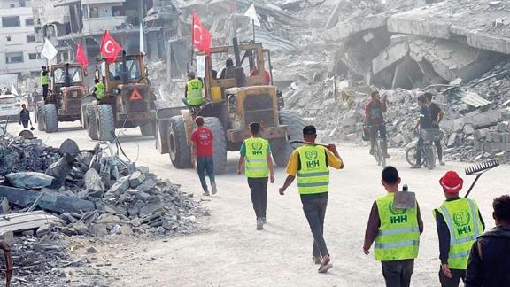 Ateşkesin ardından Türk yardım derneklerine ait iş makineleri enkaz kaldırma çalışmalarına başladı.