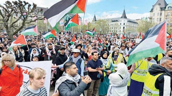 Filistin bayrakları defalarca ekrana yansıdı.