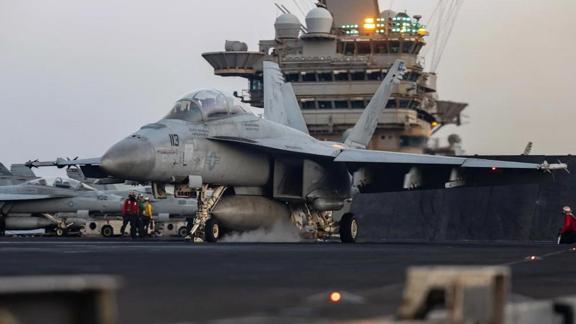 FA-18E tipi savaş uçağının, Kızıldeniz'de seyir halindeki uçak gemisinin hangar bölümüne çekilirken kontrolden çıkarak denize düştüğü bildirilmişti.