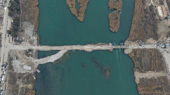Anadolu Ajansı (AA) ekibi, stratejik öneme sahip üç yıkık köprünün yanı sıra şu anda ulaşımın sağlandığı tek köprü olan "Savaş Köprüsü"nü görüntüledi.