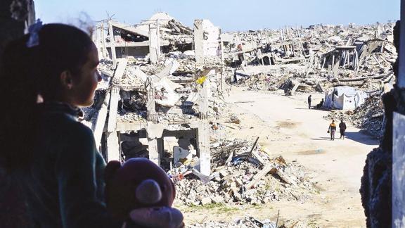 Gazzeliler yıkılan binalar arasında soğuk havaya karşı yaşam mücadelesi veriyor.