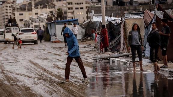 Altyapının tahrip edildiği, çadır ve konteyner gibi geçici barınak girişinin de yok denecek kadar az olduğu Gazze'de bugün yağan yağmurla birlikte Filistinlilerin yaşadığı çadırlar sular altında kaldı.