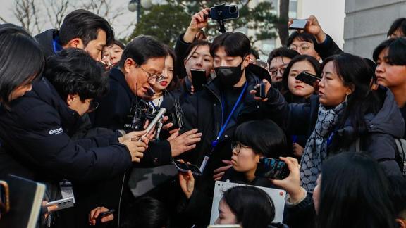 Güney Kore Ulusal Meclisinin, sıkıyönetim ilanının anayasaya aykırı olduğu gerekçesiyle azlini istediği ve bu sebeple devlet başkanlığı görevinden uzaklaştırılan ve soruşturması kapsamında 15 Ocak'ta gözaltına aldıktan sonra tutuklanan Yoon Suk Yeol, başkent Seul'de yer alan Anayasa Mahkemesi'ne getirildi. Basın mensupları görüntü alabilmek için mahkeme binası yakınındaki bir binanın çatısına çıktı.