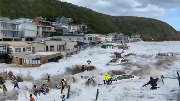 Hafta sonu boyunca Cape Town'daki Gordon's Bay ve Kalk Bay çevresindeki kıyı bölgelerinde aşırı dalga hareketi ve şiddetli rüzgarlar yaşandı.