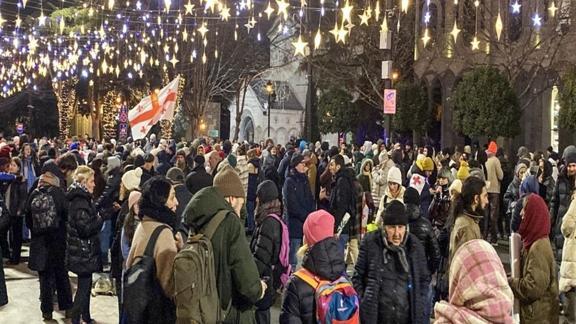 Gürcistan Başbakanı Irakli Kobakhidze'nin, ülkenin Avrupa Birliği'ne (AB) katılım müzakerelerinin 2028'e kadar askıya alındığını açıklamasının ardından başlayan protestolar sürüyor.
