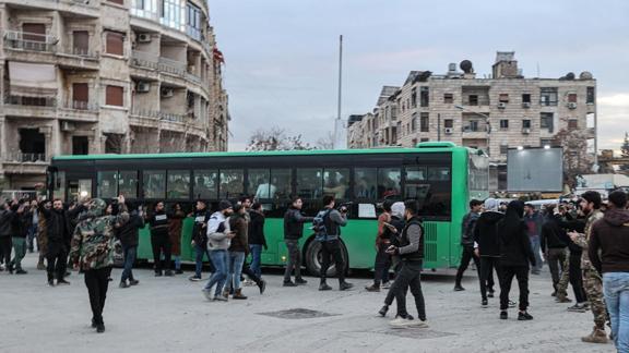 Suriye'nin Halep kentine bağlı Şeyh Maksud mahallesinde, ordunun operasyonlarında köşeye sıkışan bir grup terör örgütü YPG/SDG mensubu, tahliye uzlaşması kapsamında otobüslerle kentten gönderildi.