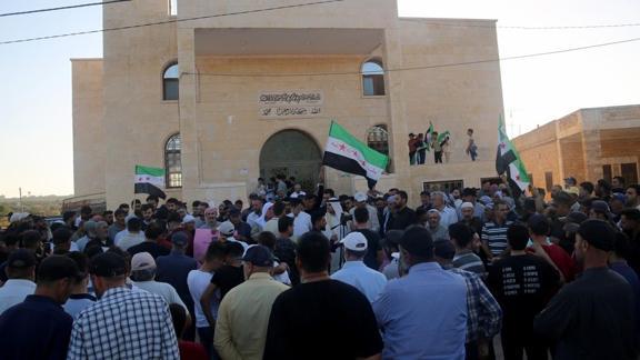 İdlib'deki Summak Dağı'nda toplanan Dürziler, Maaret İhvan köyünde düzenlenen protestoda, Süveyda'dan yükselen ayrılıkçı seslere tepki gösterdi.