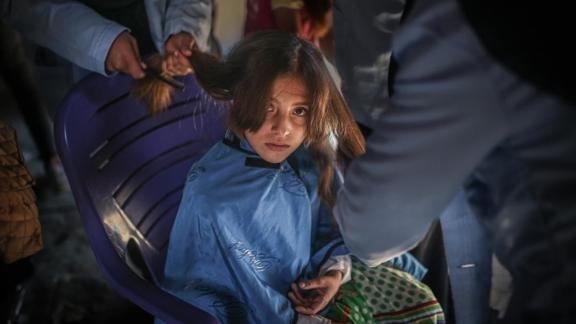 Gönüllü kadın kuaförler, Suriye'nin kuzeybatısında bulunan İdlib ilinde savaştan etkilenen çoğu yetim 2 bin kız çocuğuna Kurban Bayramı öncesi saç bakımı yaptı.