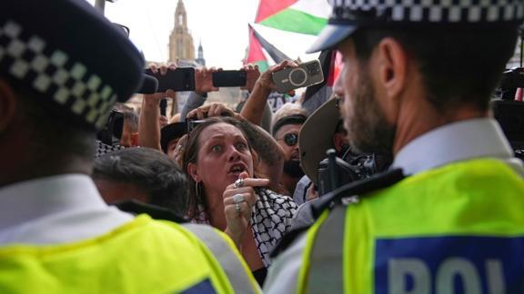 Polis, "Palestine Action"ın yasaklı örgütlerden biri olduğunu hatırlatarak, eyleme katılan çok sayıda kişiyi gözaltına aldı.