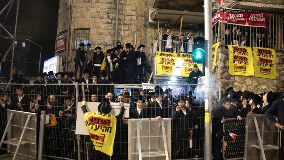 Öte yandan Batı Kudüs'teki Golda Meir kavşağında yolu kapatmaya çalışan yüzlerce Haredi protestocu ile polis arasında arbede çıktı.