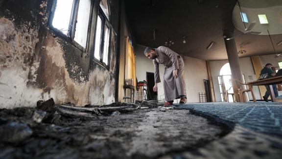 Filistin topraklarını gasbeden İsrailliler, bu sabah işgal altındaki Batı Şeria'nın Selfit kentinde bulunan El-Hacce Hamide Camisi'ni kundaklayarak duvarlarına ırkçı yazılar yazmıştı.