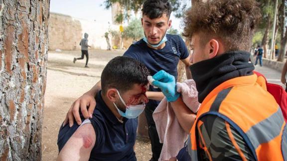 Sabah saatlerinde Mescid-i Aksa'ya baskın düzenleyen İsrail polisi, Filistinlilere göz yaşartıcı gaz, plastik mermi ve ses bombalarıyla müdahale etmişti.