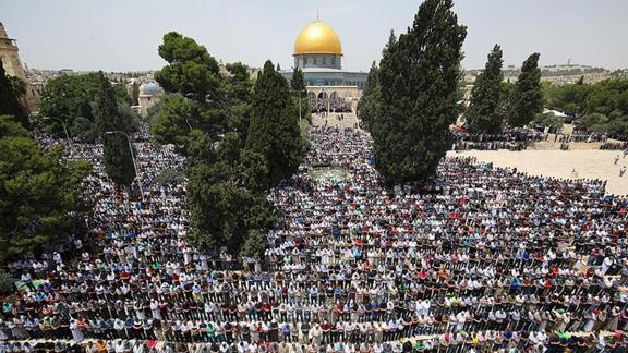 İsrail polisinin sabah baskın düzenlediği Mescid-i Aksa'da ramazan ayının ikinci haftasında 60 bin kişinin cuma namazını eda ettiği bildirildi.