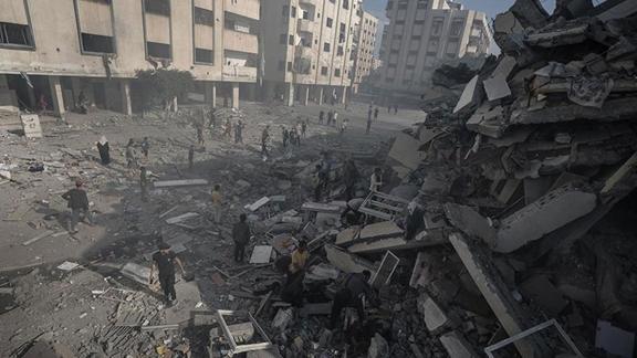 Enkaz altında halen binlerce ölü olduğu bildirilirken, halkın sığındığı hastane ve eğitim kurumları hedef alınarak sivil altyapı da tahrip ediliyor.