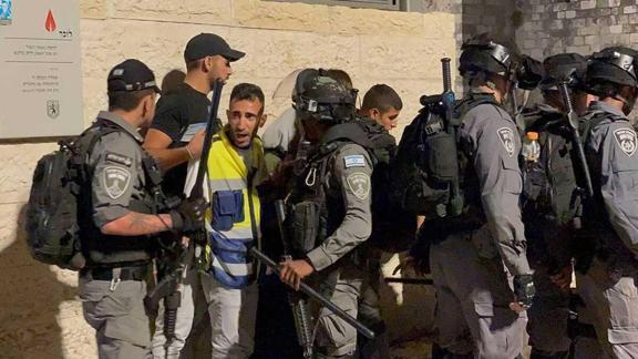 Bir süre sonra İsrail polisi ile Filistinli gençler arasında arbede yaşanınca İsrail polisi ses bombası ve plastik mermiyle müdahalede bulundu. Bazı Filistinlileri darp eden polis, birkaç kişiyi de gözaltına aldı.