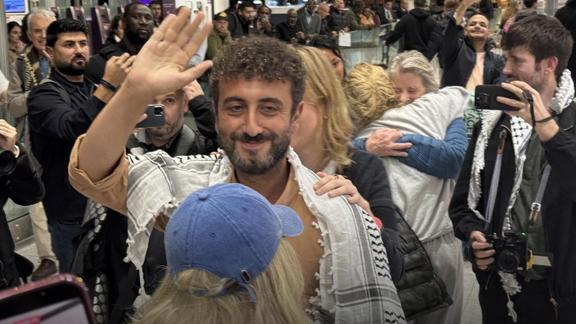 İsrail'in Küresel Sumud Filosu'nda alıkoyduğu İngiliz gazeteci Kieran Andrieu (solda)