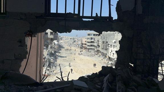 Haftalarca devam eden İsrail bombardımanının kentteki binaları moloz ve kül yığınına çevirdiği, yolların, İsrail'in hem hava saldırıları hem de buldozerlerle tahrip etmesi sonucu altüst olduğu görüldü.