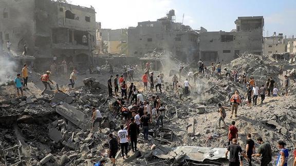 Öte yandan İsrail saldırılarının aralıksız şekilde sürdüğü El-Bureyc Mülteci Kampı'ndan yoğun duman ve sis yükselirken, yüzlerce Filistinlinin bölgeden Nusayrat Mülteci Kampı'na ve Deyr el-Belah'a göç ettiği aktarıldı.