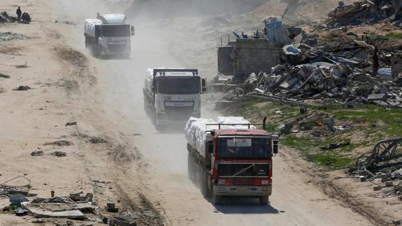 Gazze'ye giren yardım tırlarının hiçbirinin trafik, lojistik ve güvenlik sorunları nedeniyle soykırımcı İsrail ambargosuyla insani krize sürüklenen Filistinlilere ulaşamadığı belirtildi.