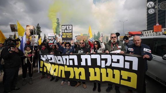 Maariv gazetesinin haberine göre, yüzlerce esir yakını ve İsrailli vatandaş, Gazze'de ateşkes ve esir takası anlaşması kapsamında 3 Şubat'ta başlamış olması gereken ikinci tur müzakerelerinin başlatılmamasını ve "İsrail hükümetinin anlaşmayı sabote etme" çabalarını protesto etti.