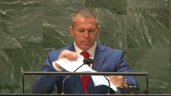 Erdan, dünkü BM oturumunda, İnsan Hakları Konseyi'nin, İsrail'in Filistinlilere karşı işlediği suçları kınayan bir raporunu yırtmıştı.