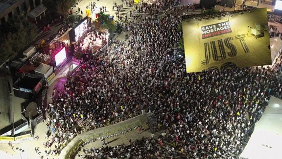 İsrailliler, Gazze'deki savaşın sonlanması ve esirlerin geri getirilmesi talebiyle Tel Aviv'deki ABD Büyükelçiliğine doğru yürüdü.